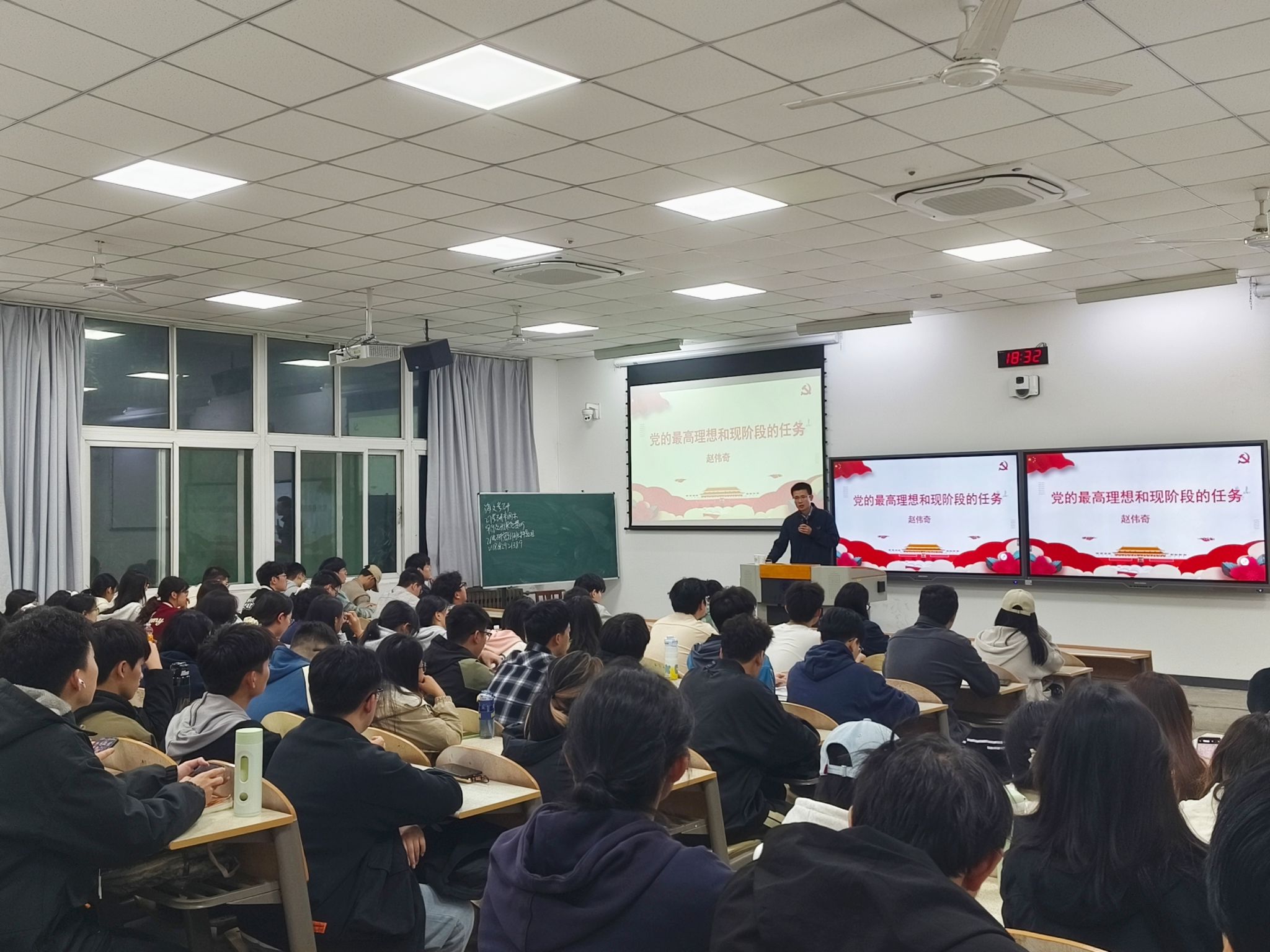 赵伟奇老师从党的最高理想和最终目标、党在社会主义初级阶段的基本路线、全面建成小康社会等方面进行了讲解。他指出,党的最高理想和最终目标是实现共产主义,指出共产主义社会是人类历史最美好的社会制度,社会主义必将代替资本主义,最后必然发展为共产主义;他还讲到,党的现阶段的基本任务是建设中国特色社会主义,社会主义初级阶段是不可逾越的历史阶段。