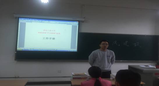 年级大会上,辅导员首先介绍了本次本科教学审核评估的背景及意义,是全校的大事,要求全体学生要统一思想,高度重视。随后,向全体学生宣讲了《西安工业大学本科教学审核评估宣传手册》,从审核评估基本知识、校情知识、审核评估范围三个大方面详细的讲解,要求全体学生要熟悉应知应会的内容。对课堂纪律、宿舍卫生、文明礼仪等方面做了详细的要求,学生从自身做起,规范言行,以良好的学习和生活状态迎接审核评估,为学校本科教学审核评估贡献自己的力量。各位辅导员还就迎接省级“平安校园”复查工作做了介绍和布置。