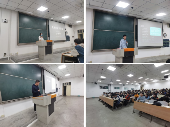 交流会,两位同学从学科知识竞赛理论方案竞赛以及实物制作竞赛三大类竞赛展开,为同学们讲述竞赛中容易遇到的问题。首先邵睿康同学对“互联网+”大学生创新创业大赛进行了讲解,介绍了以互联网为方式对于农业、制造业、文化创新、社会服务等领域进行创新创业的项目,并且介绍了以“厨余宝”为代表的往期优秀作品。结合近期的“挑战杯”竞赛项目,为大家介绍了“大挑”和“小挑针对同学们近期的竞赛准备提出了宝贵的建议。随后张维佳同学介绍了“蓝桥杯”,它主要涉及软件开发,程序设计,应用开发等领域,要对数学、光学、电学、机械设计、编程语言等学科知识有一定的储备,他还从备赛和竞赛方面为大家分享了自己比赛遇到的问题和解决方法等。