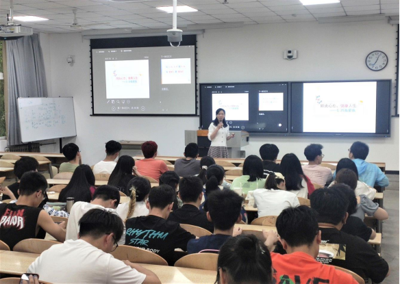 25心理健康活动月之际,为更好地提高学生心理健康关注意识,培养学生有意识地认识自我、探索自我、关爱自我的习惯,学会调节、缓解学习生活中的负性情绪和强压力,提高幸福感,光电学院于5月261900在教2-106举办了“阳光心态 健康人生——5.25我爱我”心理讲座。此次讲座,由学院心育员陈慧英老师主讲。2018级和2019100名同学聆听了讲座。