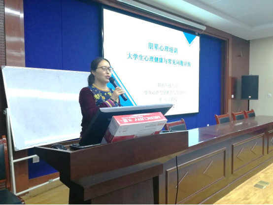 本次培训以大学生心理健康与常见问题识别为主题,主讲老师仍为陕西科技大学学生心理健康教育与咨询中心主任董雪副教授。培训由学院心育员陈慧英老师主持。2016级班级心理委员、宿舍信息员共计100人参加了讲座。