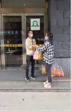 为隔离在华源酒店的学生送去了“秋日的温暖”和学院的问候。由学院胡锴老师、辅导员刘地格老师作为代表前去慰问。