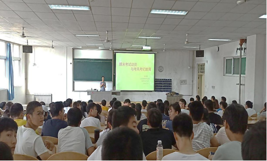 陈老师首先从当前学生中存在的学习方面错误认知、不良学习习惯谈起,强调了学习是学生的本职,学习成绩是考核学生的一项重要指标,同学们要在思想上高度重视。同时,要认真复习备考,注重细节,不忽视任何一门课程,沉着冷静应对考试。