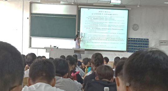 成绩固然重要,但凭借的是学生的真才实学。陈老师特别介绍了2018级学生手册《第五章违纪、作弊的认定及处理》、《西安工业大学学士学位授予工作细则》的内容,并结合近期出现的考试违纪实例,强调诚信考试的重要性,阐述考试违纪产生的严重后果,希望同学们杜绝作弊。
