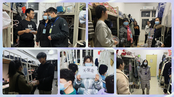 疫情发生以来,“一切为了学生”是所有学生工作干部的共同信念。为了积极开展防疫知识、防疫政策宣传教育,加强正确引导,辅导员老师们走访学生宿舍,询问学校封闭期间学生在生活和学习上遇到的困难,学院为学生们购买并发放了慰问品并发放了学校的防疫物资。封宿以来,老师们给在校5名隔离学生送饭;并积极为校外23名学生解决吃饭难等问题。学院全员学工队伍多次走访宿舍并强调,此次疫情形势严峻,学生们要提高自身政治思想觉悟,勤通风、勿串门、积极配合学校各项工作;同时督促学生按时完成线上学习任务,并积极鼓励学生进行宿舍文化建设(制作视频短片、绘画、手工制品等)。在新年来临之际,学院老师为学生们送去新年祝福及新年大礼包,进一步坚定了师生共同战胜疫情的决心。