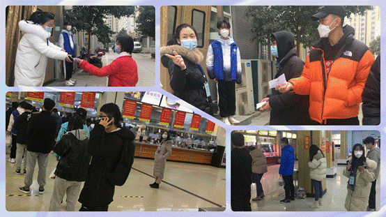 学院党委书记周顺作为一名党员先锋队的志愿者,带领学院教职工党员配合完成了近千余名考务人员核酸检测工作,并和总务人员、团委志愿者一起为3000余名社会考生及考务人员送餐近万余份。高明院长、潘永强副院长、吴玲玲副院长在各自社区做志愿服务,学院纪红芬、李茜老师在经开第一中学为滞留研考生提供志愿服务工作。此外,学院每天至少安排6名志愿者参与食堂及核酸检测的秩序维持。