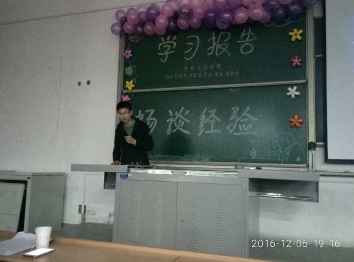 在教3―217教室举办获2016年国家奖学金学生成长报告会。