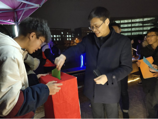 首先,主持人崔晨琛带领大家通过一段视频和一个Vlog一起回顾了往届灯光节的盛况以及科协工作人员为本次灯光节所做的前期准备。接着,主持人文天航邀请周副院长上台为本次灯光节致开幕词。周副院长表示,本次灯光节非常震撼,参赛选手的制作热情和积极创新的精神深深感染着现场每一个人。大家在LED灯作品制作的过程中,不仅学习到了课本以外的知识,也提高了团队合作精神。周副院长还希望能有越来越多的同学能参与到学生科技竞赛当中来,在这个过程中提升自己能力,感受科技制作,科技创新的魅力。随后,大会宣布灯光节投票规则并邀请与会嘉宾进场为自己喜爱的作品投票,来到现场的同学们也积极参与此次灯光节的作品投票,每个人都为自己心怡的作品投出了宝贵的一票。最后,与会嘉宾与光电科协工作人员合影留念,此次灯光节在后圆满结束。