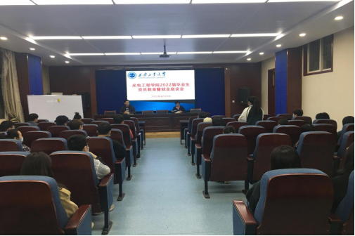 在工6-402召开“就业我先行,党员做模范”为主题的座谈会。学院党委书记周顺、副书记杨利红、辅导员马睿、毕业班辅导员雷浩然和陈慧英以及36名未就业学生党员参加了座谈会。