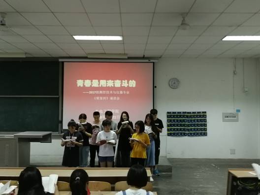 2017级测控技术与仪器专业举办了以“青春是用来奋斗的”为主题的《梁家河》诵读活动。2017级辅导员马睿主持此次活动,2017级测控与技术仪器专业全体同学参加。