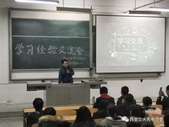团委学生会主办的学习经验交流会在教3-217教室举行。参加本次会议的有2017级辅导员孙君老师、6位优秀学生代表、学习部全体成员及300名2018级学生。