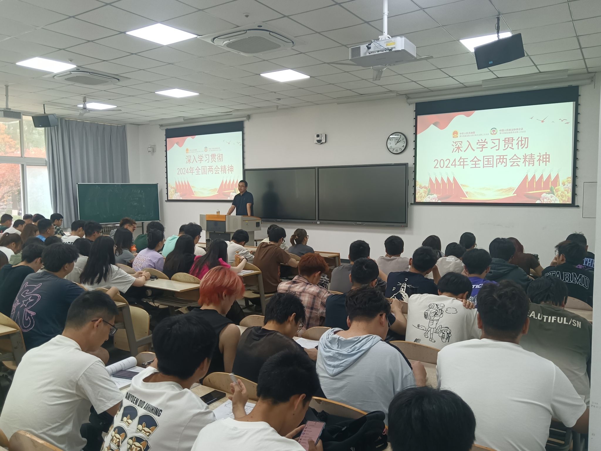 在教2-103组织2022级学生开展学习2024年全国两会精神活动。