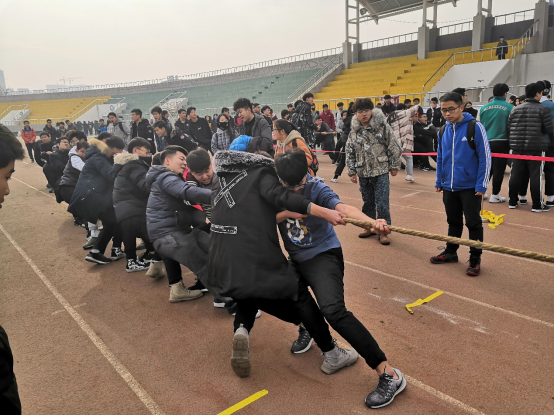 本次比赛采用三局两胜淘汰制,各学院在赛前进行了分组抽签。比赛伊始,裁判一声令下,比赛迅速进入白热化。在不到二十分钟的时间里,选手速战速决,胜负结果很快见分晓。在强强竞争的态势下,选手根据以往比赛取得的经验调整战略,发扬优势。不少同学被不同场次的比赛所吸引,来回奔跑观看,加油呐喊,在观众的激情鼓舞之下,选手们更加动力十足,意气与汗水齐飞,口号与呐喊共震,纷纷使出浑身解数,拉绳的身体几乎要与地面亲密接触了。