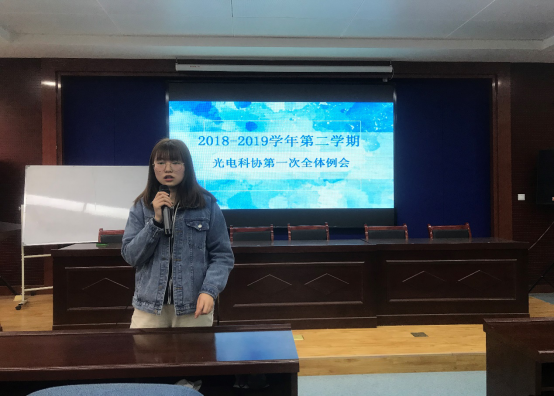 科协在工6-402召开了2018—2019学年第二学期第一次例会。参加本次会议的有光电科协主席团、各部门部长以及科协全体干事。本次例会由科协副主席付群航主持。