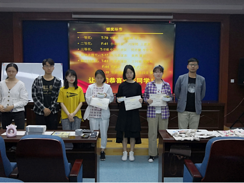 团委学生会主席团进行现场打分评选出获奖作品。经评比,获奖作品共七件,一等奖:118队,参赛学生王锦辉、李志;二等奖:小龙虾队,参赛学生刘琛珺、土茜茜;三等奖:中国代表队,参赛学生简亦朦、李常青;最佳主题奖:托马斯家族,参赛学生黄燕、董喆;最佳创意奖:可爱柯基队,参赛学生王珂楠、李凯莉;柠檬队,参赛学生段林涛、武冠华;你负责编队名队,参赛学生李佳雯、李佳玲。