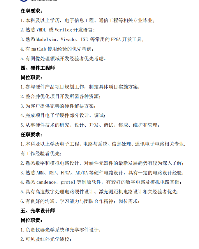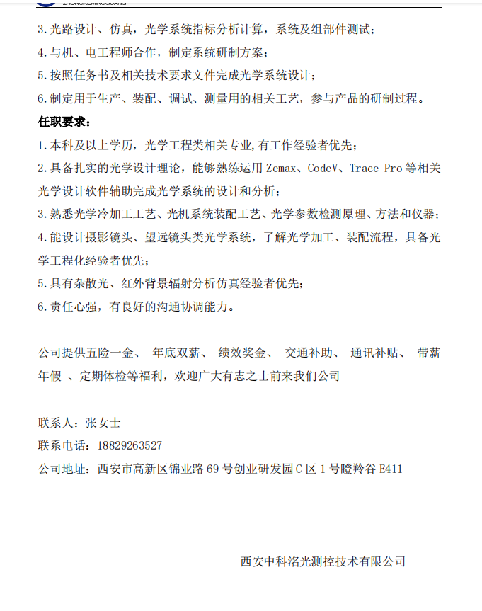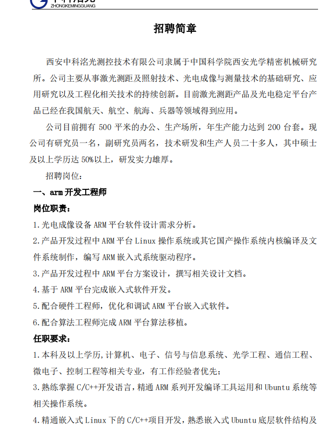 西安中科洺光测控技术有限公司招聘