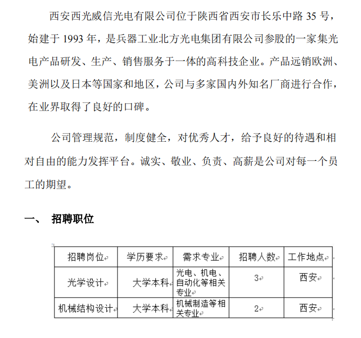 西安西光威信光电招聘