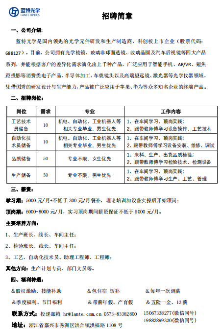 蓝特光学校园招聘(9月14日 教2-104)
