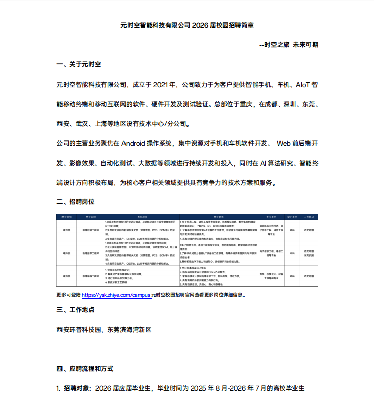 元时空智能科技有限公司2026届校园招聘简章