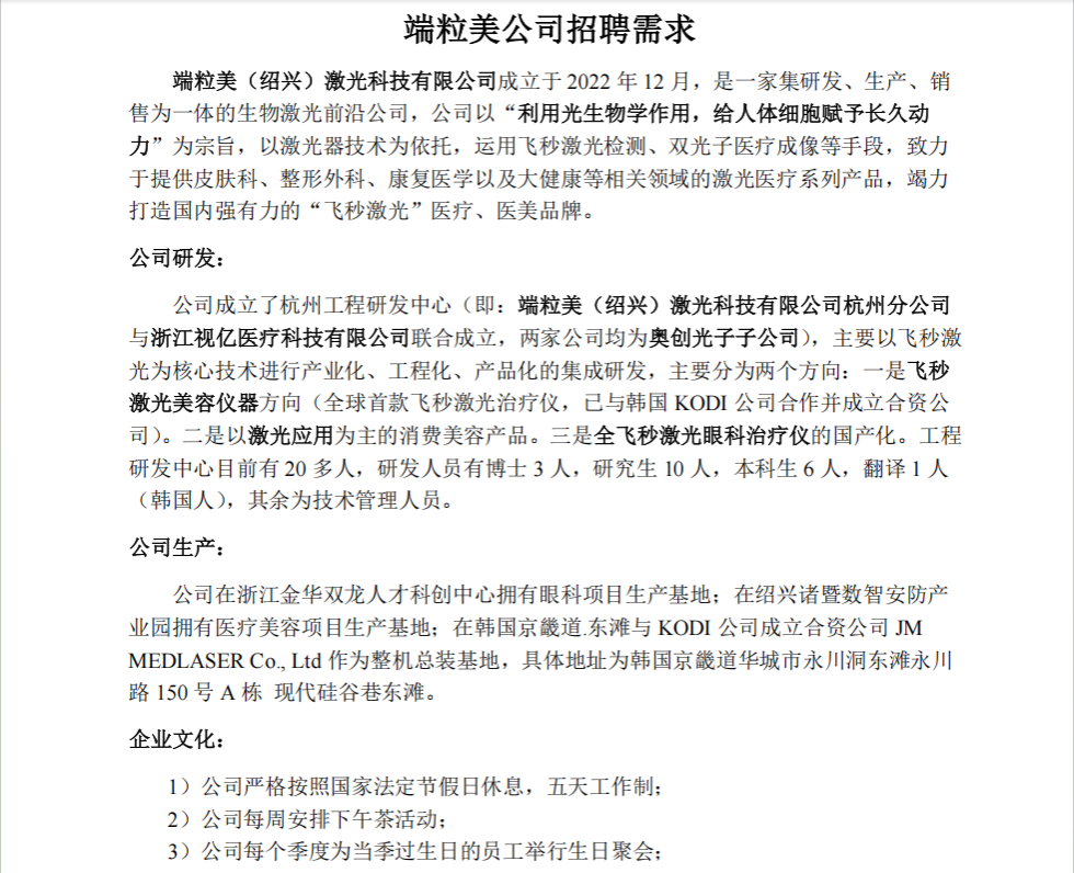 端粒美公司招聘简章