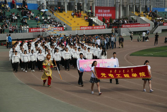 的方阵徐徐走来,队前面有金猴兆禧,锣鼓喧天,方阵前面的100名同学以饱满的热情,迈着整齐的步伐,喊着嘹亮的口号,和老师们一起精神饱满地走过主席台,向大家展示了光电师生的精神风采。运动会中,一篇篇来至蚂蚁足球