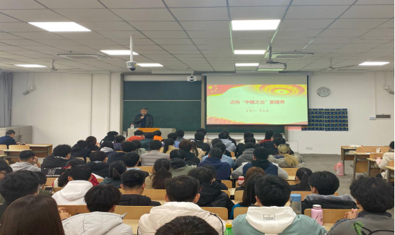 在这堂以“迈向‘中国之治’新境界”为主题的思政课上,祁玉龙围绕“长期探索与伟大创造”、“认清制度优势,坚定制度自信”、“完善好,发展好我国国家制度和国家治理体系”三个部分的内容,结合党的十九届五中全会精神的学习宣传、当前国际国内经济社会发展形势、我国取得的抗疫成就等,运用大量的数据和身边鲜活事例,向同学们讲述了我国国家制度和国家治理体系的显著优势和自信来源。