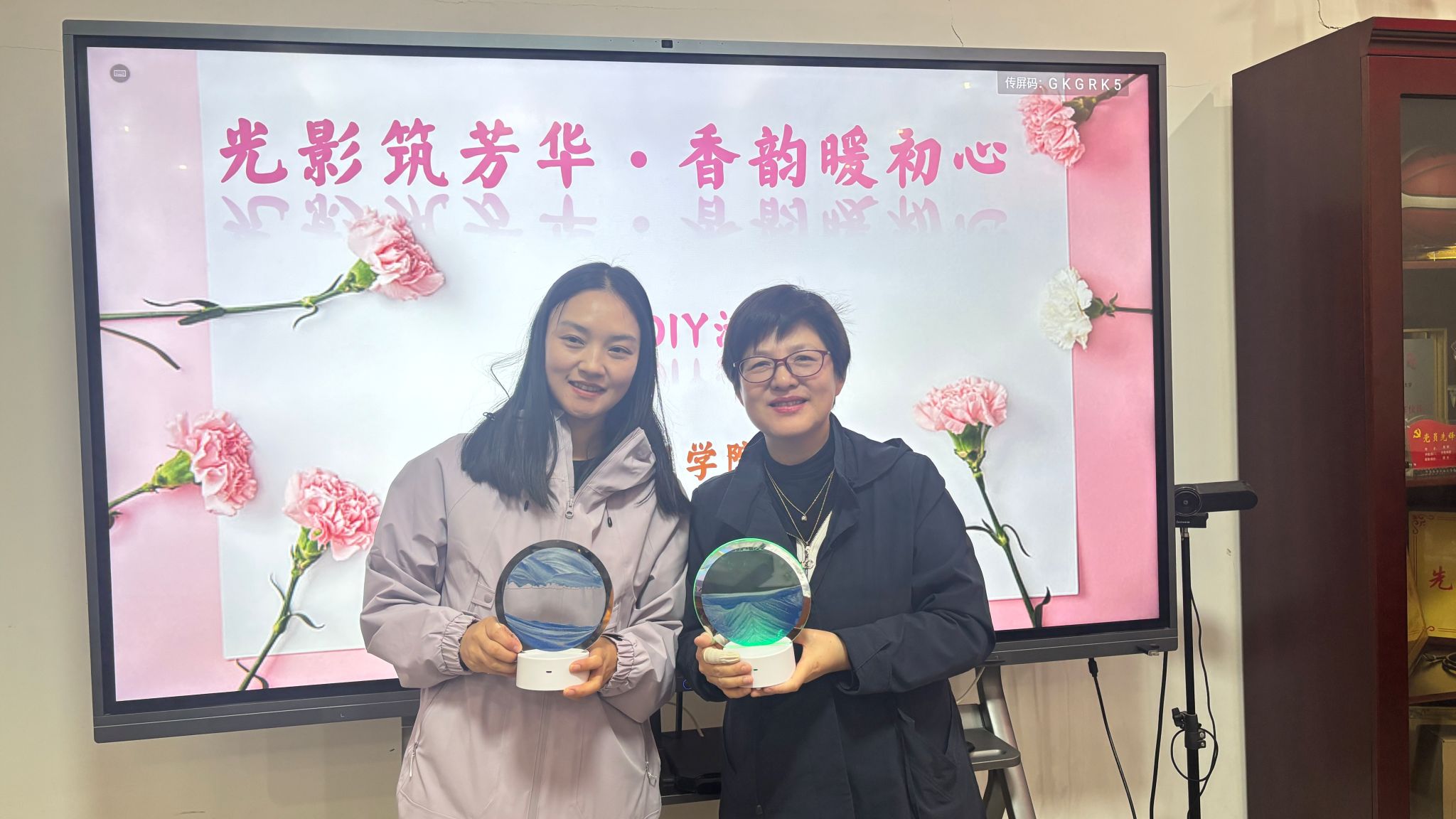 创作结束后,女教工们纷纷展示自己的手作成果,合影留念,定格温馨美好的瞬间。