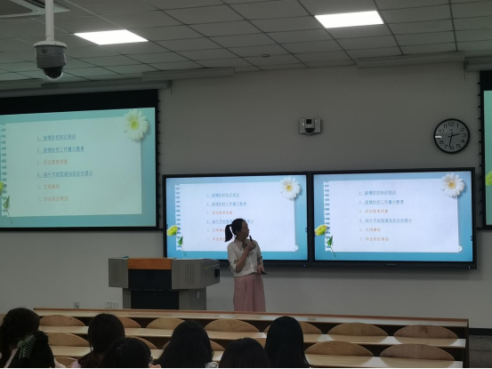 首先,两位老师给大家进行了疫情防控知识的培训和疫情防控工作警示教育,并强调前期我省在校园封闭管理过程中,出现过个别学生翻墙私自外出等严重违反疫情防控规定的行为,给学校疫情防控工作带来重大安全隐患,故鼓励大家科学防疫,平时做好个人防护。接着两位老师对前段时间安全隐患排查工作中遇到的问题进行了总结,提醒大家注重宿舍安全隐患,提高安全意识。然后,就端午放假通知进行安全提示,强调非必要不出省,不离市,离返校严格遵守学校规章管理制度做好上报,途中避免聚集,减少接触。