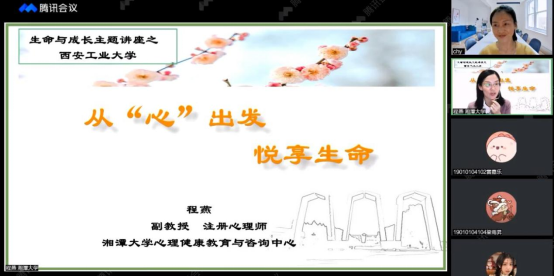 特邀请湘潭大学心理咨询中心主任程燕老师做《从“心”出发 悦享生命》主题讲座,500余名本科学生通过腾讯会议及直播在线聆听了讲座。