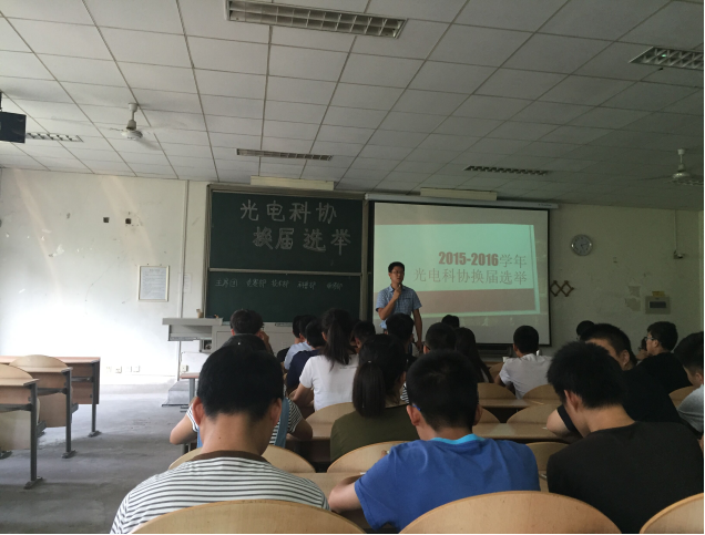 科协一年来的工作进行了总结,他充分肯定了科协过去一年的工作和取得的成绩,同时,李老师对工作中存在的不足提出了意见和建议,希望今后要提高学习的主动性,工作中要加强沟通协作,提高工作效率。随后,科协主席高祥同学为大家介绍了换届竞选流程。分为个人演讲、现场提问、评委打分、单独面试四个环节。参加竞选的共有来至2015、2014级19名同学。经过紧张激烈的角逐,最终确定了新一届科协干部。院团委书记李睿老师对新一届科协干部提出新的要求与期望,希望科协的每一位学生干部与成员齐心协力努力学好专业知识,不断探索创新,举办具有专业特色,有影响力的科技活动,吸引更多热爱科学的同学加入科协,把蚂蚁足球