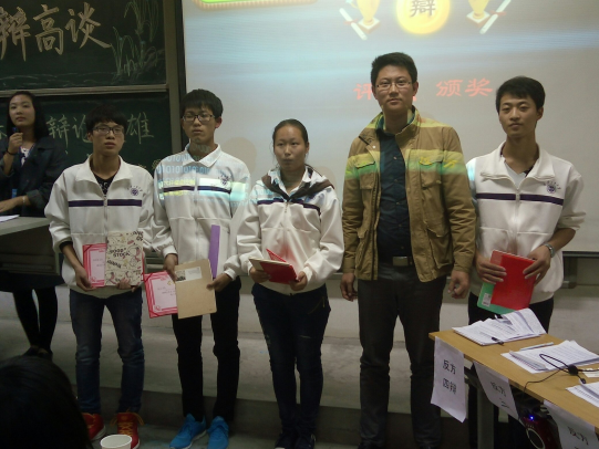 经过三天激烈的角逐,进入决赛阶段正反双方以“男性与女性哪一个更需要关怀”为题展开激烈辩论。比赛中,正反双方辩友唇枪舌剑,以理服人而又互不相让,充分展示了各位参赛辩手的逻辑思维能力,语言组织能力及应变能力。最终,15010102班夏琰同学,15010105班李佳辰同学,15010109班徐泽涛同学,15010215班赵又尺同学获得本届辩论赛“最佳辩手”称号,并由李睿老师为他们颁奖。