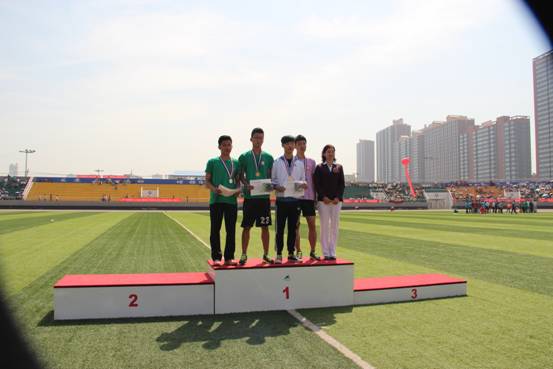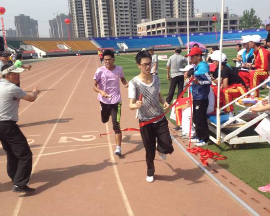 健儿们不畏风吹日晒,顽强拼搏,发扬奥运精神,赛出了风格,赛出了水平。师生参与的异程异性混合接力获得第一,师生30米穿梭接力获得第二,教工男子实心球黄晓龙老师获得第二,郭峰老师获得第三。14010109班赵高祥获得男子跳高第一,14010217班王荣廷获得男子跳高第二,14010108班王恒飞获得男子跳远第三,14010210班张蕾、杨晓芸、赵乐、车方弈女子4x400接力赛取得第三名,团体总分获得第六较去年有了很大进步,同时获道德风尚奖。