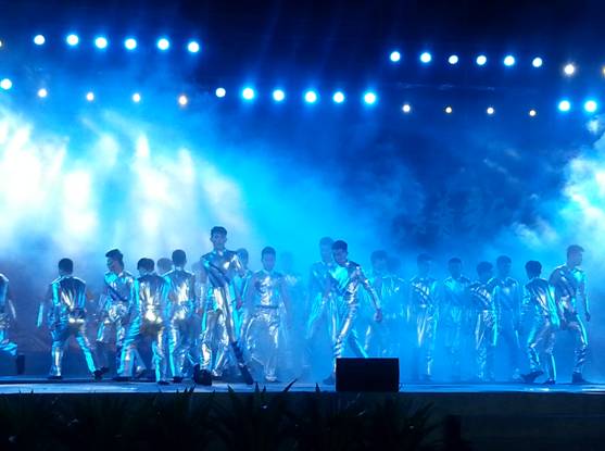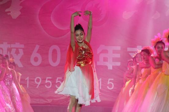 130110班学生,在《青春旋律》歌曲串烧中演唱的《十年》,表达了光电人对母校深深的眷恋。孙聪,130113班学生,参与的男子群舞《我要上光荣榜》,充分表达了庆祝校庆的喜悦心情。14010104班刘君瑶领舞的《桃李花开时》,表达了对梦想的追求和学校的热爱。2012级、2013级辅导员兰珺喆、李睿和徐昌杰、刘木兴、江铭、苗艳波等退休职工同台演绎的T台秀《流金岁月》展现出老、中、青三代光电人昂扬向上的精神状态,赢得了在场观众的喝彩,点燃了全场的热情。徐昌杰、江铭参与的师生合唱的《共筑中国梦》,将晚会推向高潮。在掌声和欢呼声中,西安工业大学庆祝建校60周年文艺晚会圆满落幕。