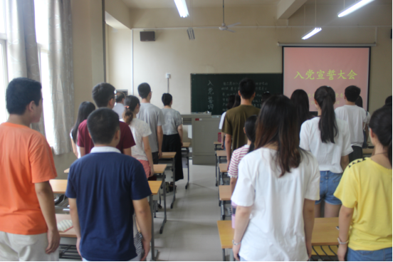在未央校区工6-402教室隆重举行新党员入党宣誓大会。院党委书记弥谦、副书记陈彤及51名新发展的党员参加了仪式。