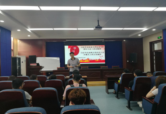 首先,李老师带领支部全体党员一起学习了习近平总书记在纪念五四运动100周年大会上的重要讲话并进行解读,强调作为当代青年应该谨记习近平总书记的谆谆教诲,练就过硬本领,珍惜韶华、不负青春,努力学习掌握科学知识,努力成为德智体美劳全面发展的社会主义建设者和接班人。“一代人有一代人的长征,一代人有一代人的担当”,作为一名当代大学生,应该牢记习近平总书记的嘱托,以习近平总书记的重要讲话为行动指南,发扬伟大五四精神,努力学习,为实现中华民族伟大复兴而贡献自己的力量。接下来,支部副书记罗勇强带领学习了习近平总书记在亚洲文明对话大会开幕式上的主旨演讲。