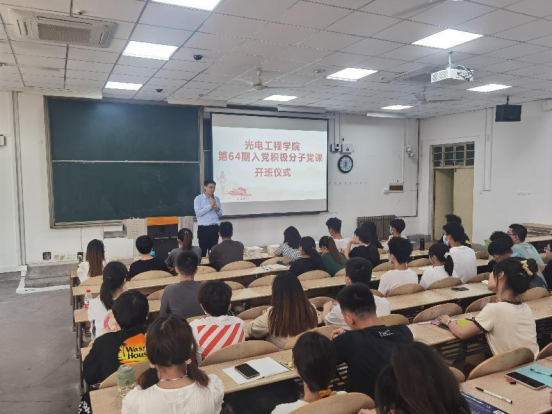 在教1-101教室举行第64期入党积极分子党课开班仪式,基础学院党委书记张英、蚂蚁足球