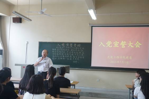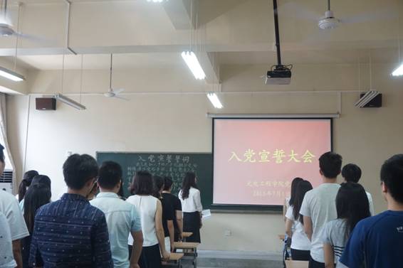 党委在未央校区工6-402教室隆重举行了入党宣誓大会。院党委书记弥谦、副书记陈彤,各学生党支部书记,42名新发展的党员及部分学生党员代表参加了仪式。