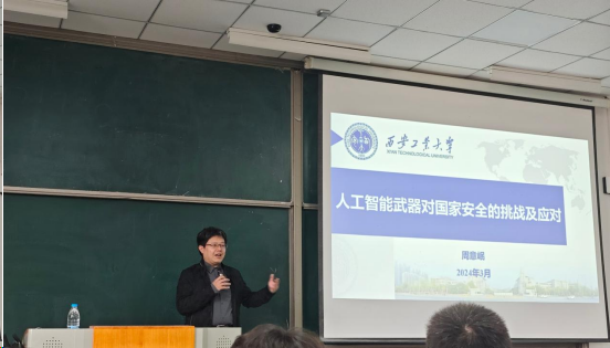 讲座中,周意岷老师首先介绍了人工智能武器的发展历程,深入剖析人工智能武器带来的国家安全挑战。他结合全球安全倡议,提出了应对人工智能武器挑战的策略,包括建立国际合作机制、加强监管与规范等方面的建议。他强调了合作与沟通的重要性,呼吁各国共同致力于维护全球安全与稳定。