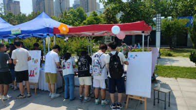 在博苑广场举行了一场别开生面的手工扎染制作及作品展活动。此次活动吸引了150余名师生参与,共同体验这一古老而又充满创意的技艺。学院党委副书记杨利红和辅导员们也共同参与了活动。