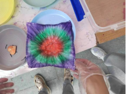 上午,在工作人员指导下,同学们纷纷拿起工具,通过折叠、捆绑、浸染等将一块块普通白布变成色彩斑斓、独具特色的艺术品。同学们发挥无限创意,用心设计每一个细节,从颜色搭配到图案构思,每一步都体现出他们对这门古老技艺的新理解和新诠释。此次活动不仅让学生们体验到传统工艺的魅力,还增强集体凝聚力和团队合作精神。通过这种形式,让更多年轻人了解并喜爱上中华民族传统文化,增强文化自信。