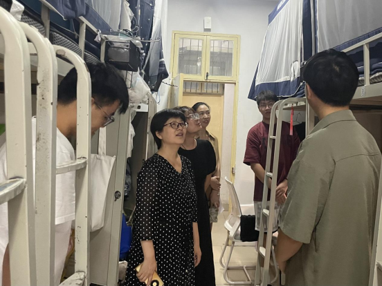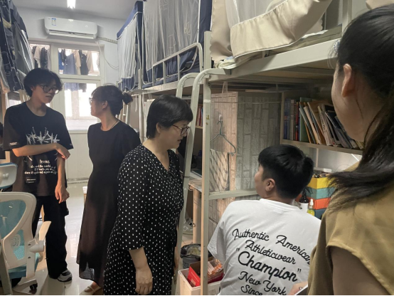 党委副书记杨利红、学生工作办公室主任刘强珺及23级辅导员陈慧英一行三人深入2023级学生宿舍,看望返校学生,检查宿舍安全、卫生等情况。