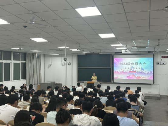2023级本科生新学期的首次年级大会。大会由23级辅导员陈慧英老师主持,分两批次进行,2023级全体学生参加了本次会议。