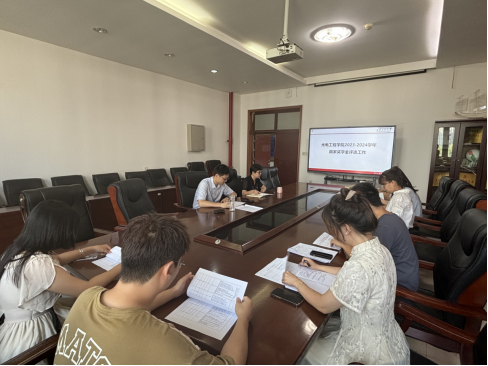 在工6-416会议室召开2023-2024学年国家奖学金评审会,评委由全体学工队伍及非参评学生代表构成,会议由学工办主任刘强珺主持。