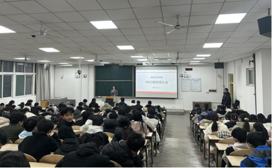 2023级全体学生在教1-101教室召开年级大会。会议由辅导员陈慧英主持,会议内容主要包括三方面:临近国家级大考和期末考试,做好考前诚信教育;法制意识培养,特别是邮购境外非法出版物的风险警示;冬季特殊时期,关注学生身体健康与心理健康,守好安全底线。