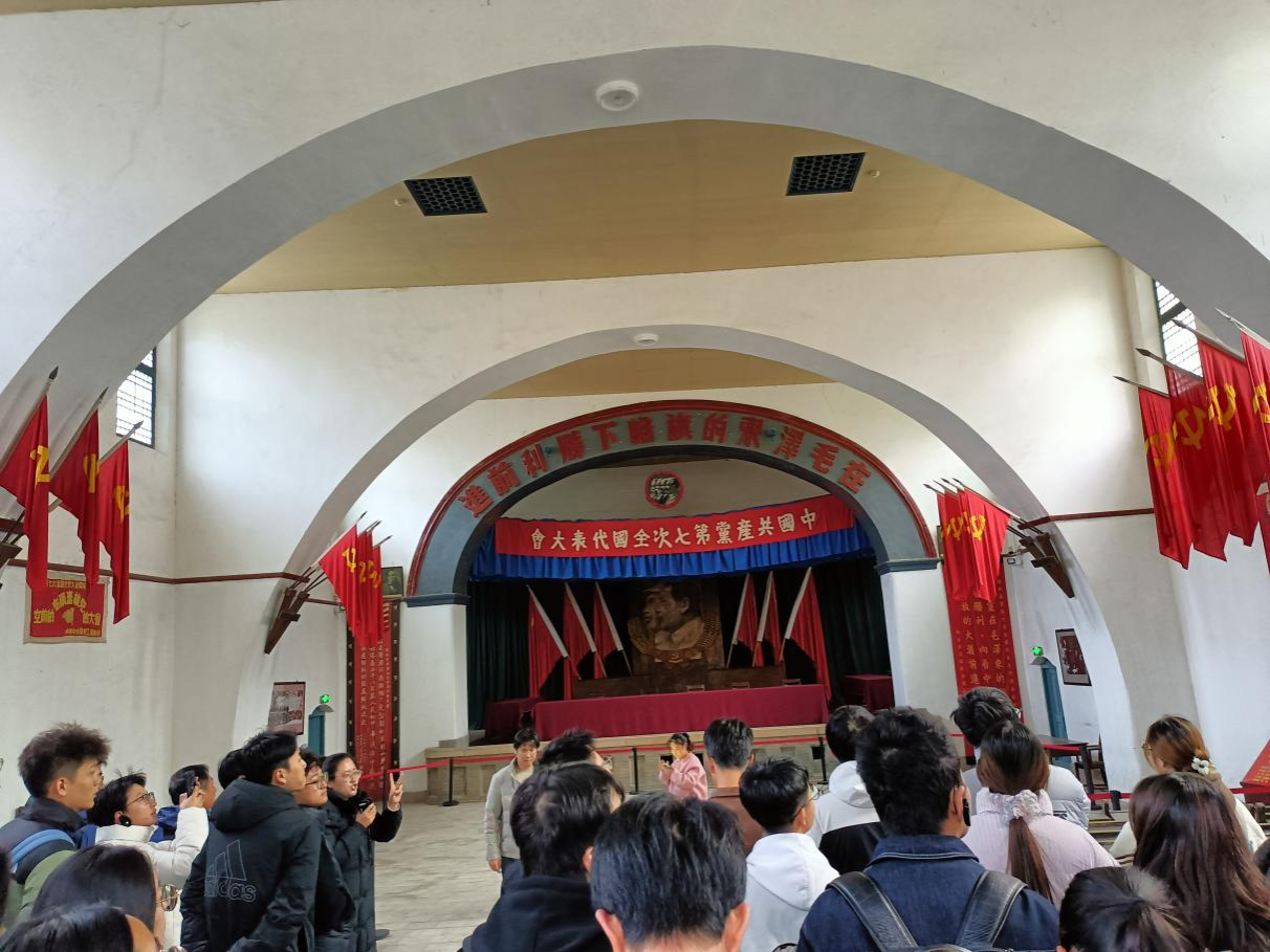 16日上午,同学们走进凤凰山与枣园革命旧址。在枣园,全体学员整齐列队,齐声诵读《为人民服务》,“为人民利益而死,就比泰山还重!”那一刻,青年的使命感有了具体的形态。下午,大家步入杨家岭革命旧址。中共七大会场的木椅条桌静静陈列,仿佛仍回响着“在毛泽东的旗帜下胜利前进”的誓言。实物与影像,为“坚定正确的政治方向”写下生动注脚。