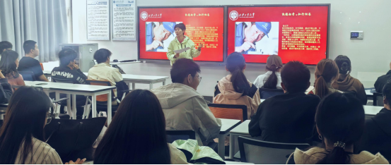 马芳荣老师围绕“以匠心敬时代 以榜样育新人”核心主线,详细讲述了徐立平、姜涛等航天领域一线劳模的先进事迹,让在场学生沉浸式感受大国工匠的责任与担当。徐立平从事固体火箭发动机燃料药面微整形工作30余年,在危险岗位上精雕细琢、误差不超0.2毫米,以坚守诠释匠心本色;姜涛手握焊枪38载,独创“分段跳焊法”攻克技术难题,助力航天壮举并传承技艺。